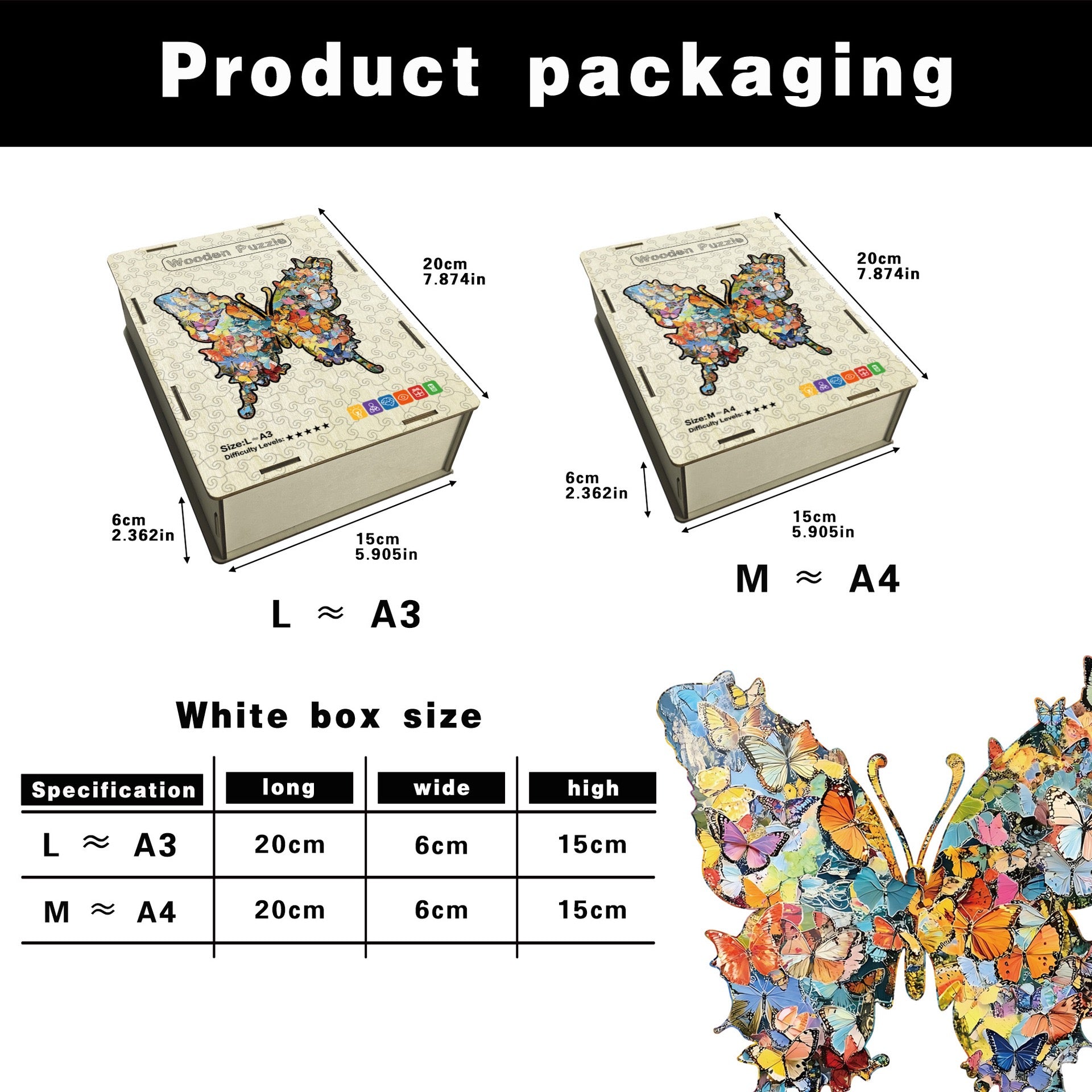 Crafted from premium wood, each piece features intricate laser-cut shapes and hidden whimsical mini pieces. This vibrant butterfly design is perfect for relaxing solo time, family fun, or gifting to puzzle lovers.