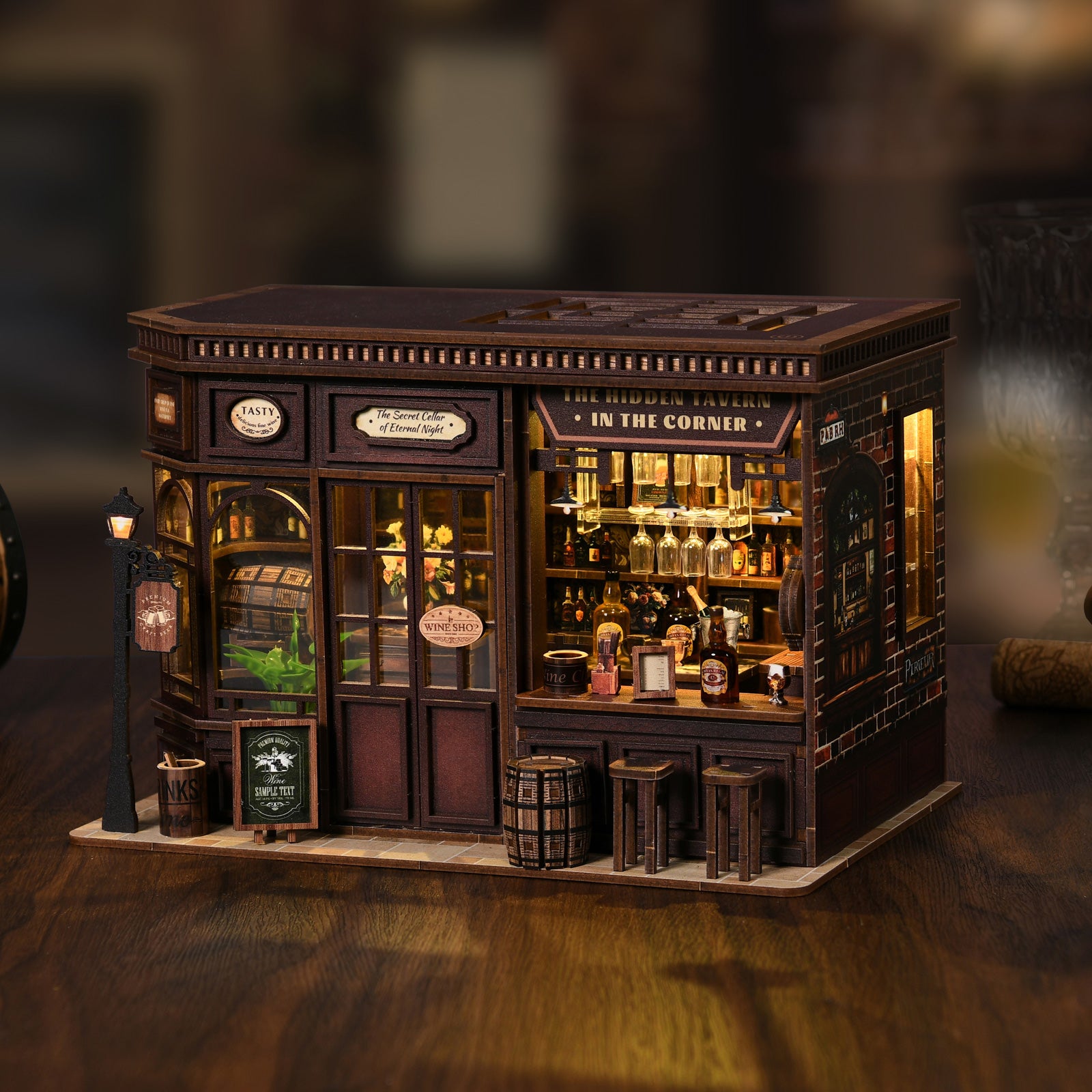 DIY Miniature Dollhouse Kit – Vintage Tavern Bar with LED Lights